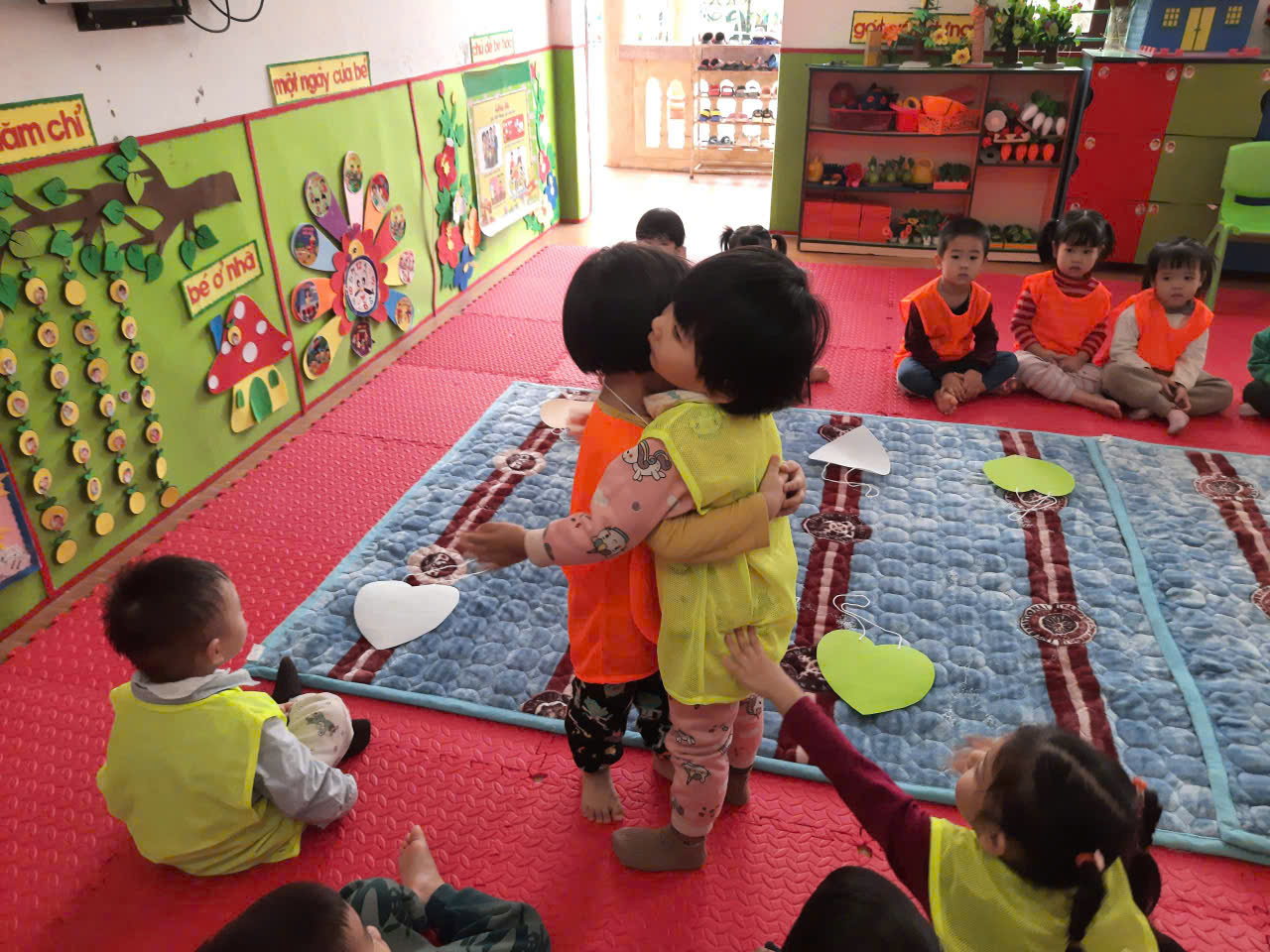 Giáo viên lớp luôn chú trọng giáo dục trẻ biết yêu thương, chia sẻ, nhường nhịn và cùng nhau chơi hòa thuận. Thông qua các trò chơi, bài hát, câu chuyện, các con dần hiểu rằng: