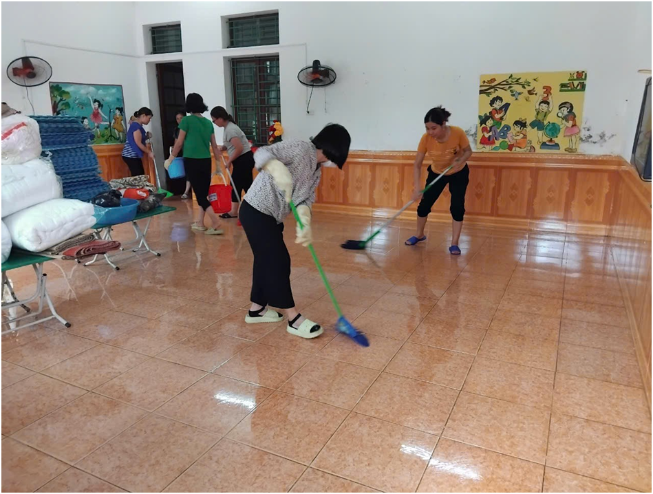 Để chuẩn bị cho năm học mới ngay từ đầu tháng 8 Ban giám hiệu nhà trường đã có kế hoạch rà soát, tu sửa cơ sở vật chất, trang thiết bị, trang trí trường, lớp, vệ sinh, trong và ngoài lớp học. Vệ sinh đồ dùng, đồ chơi các nhóm/lớp, để sẵn sàng chuẩn bị cho trẻ một môi trường khang trang, Xanh – Sạch – Đẹp và an toàn trước khi bước vào năm học.