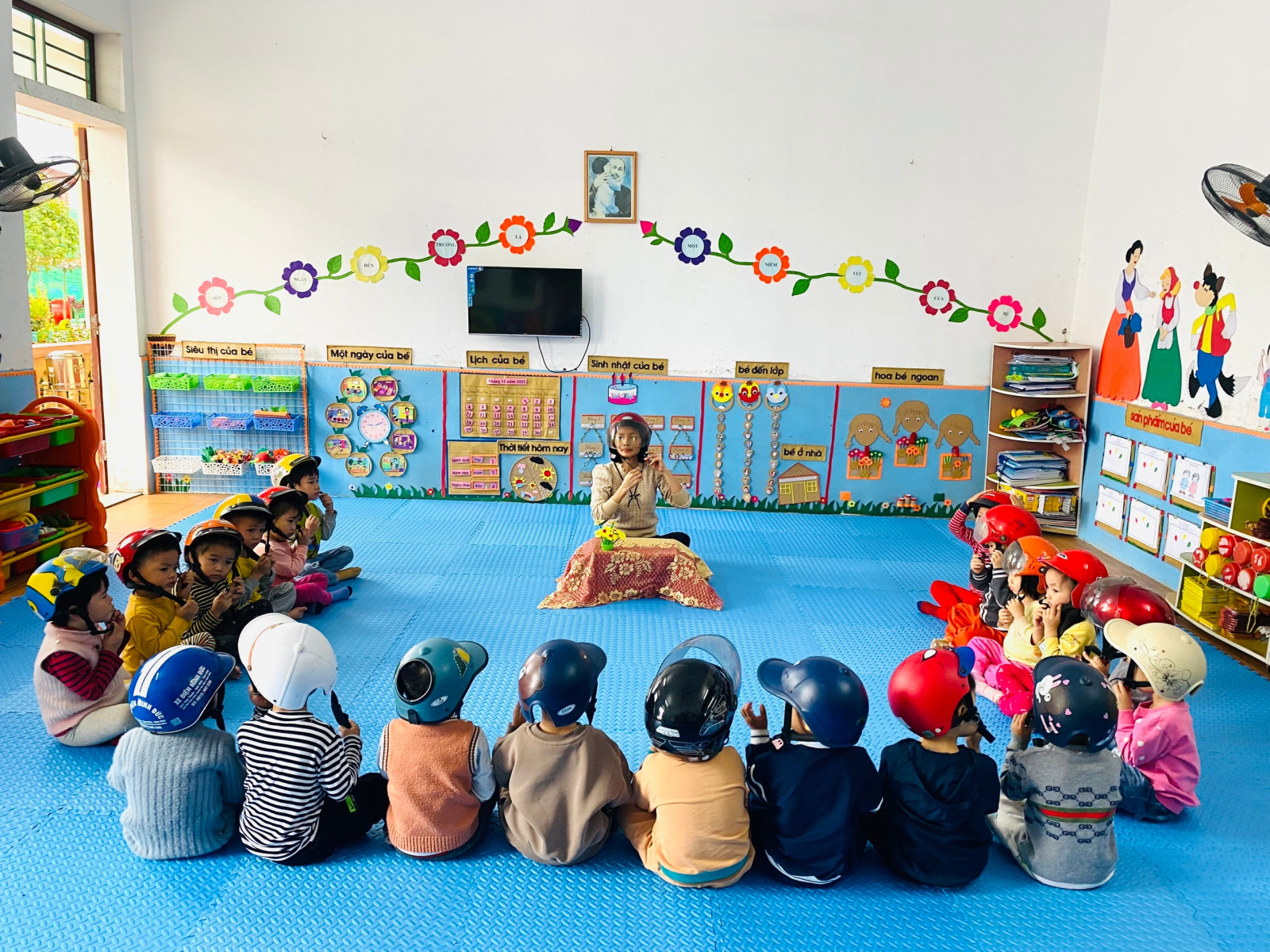 Dạy trẻ 3-4 tuổi kỹ năng đội mũ bảo hiểm