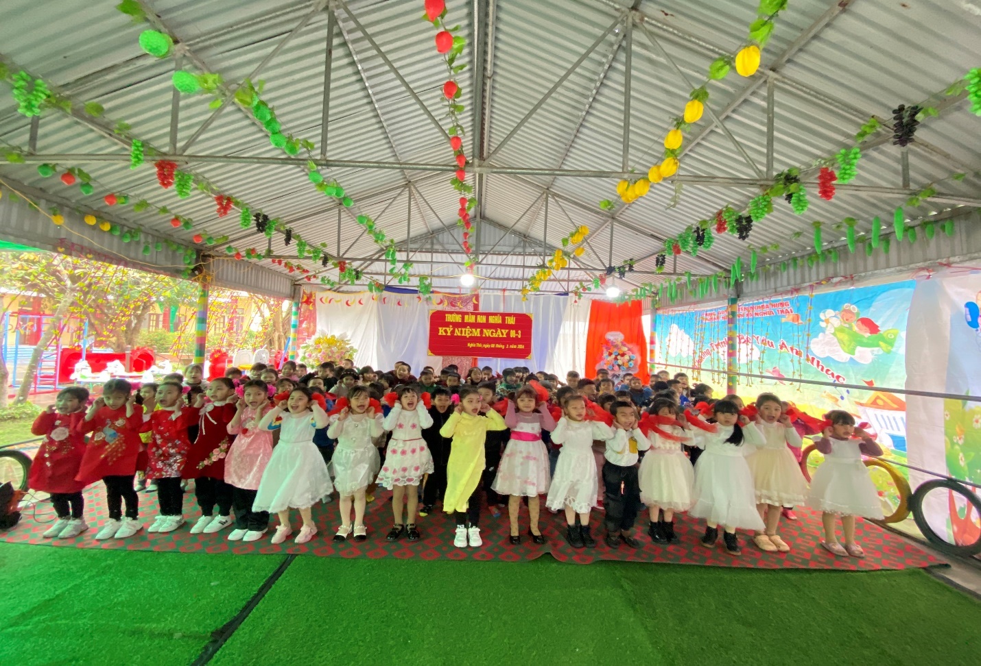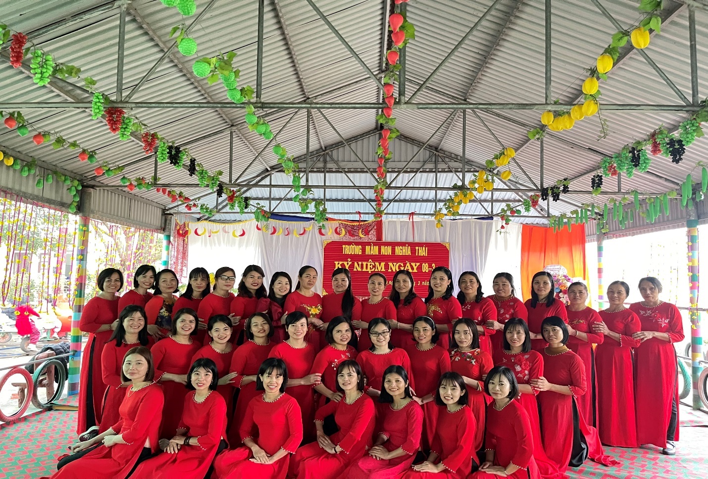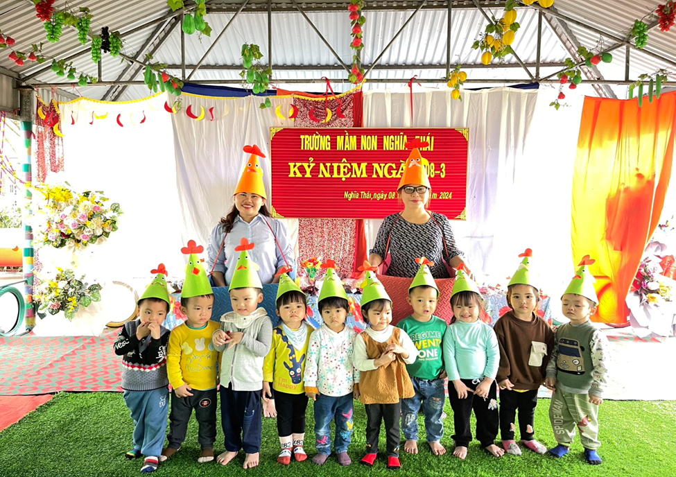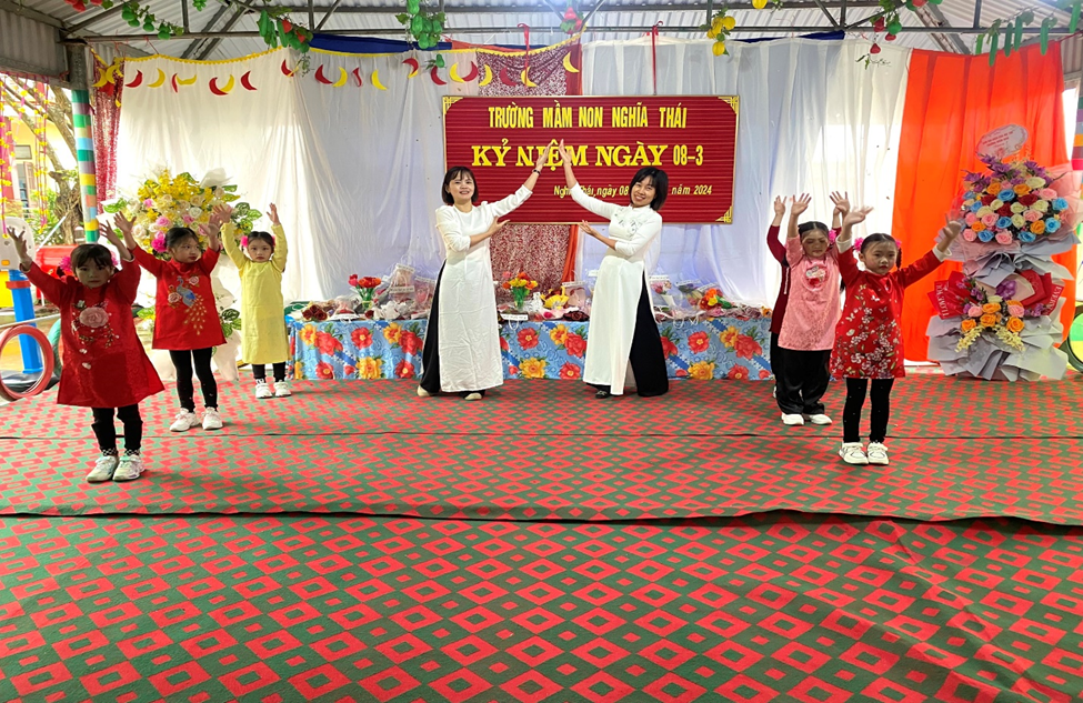Với tinh thần ngày Quốc tế Phụ nữ 8/3 và tinh thần khởi nghĩa Hai Bà Trưng quật khởi, chị em phụ nữ trường Mầm non xã Nghĩa Thái không ngừng phấn đấu, phát huy tinh thần “Chủ động, sáng tạo, nâng cao năng suất, hiệu quả công tác và xây dựng gia đình hạnh phúc” góp phần hoàn thành xuất sắc các mục tiêu, nhiệm vụ mà nhà trường đã đề ra trong năm học 2024 và phát huy thật tốt tinh thần cũng như truyền thống của phụ nữ Việt Nam với 8 chữ vàng: Tự tin – Tự trọng – Trung hậu – Đảm đang, xứng danh với lời tôn vinh: Dân tộc Việt Nam là dân tộc anh hùng, phụ nữ Việt Nam là phụ nữ anh hùng. Chúng ta có quyền tự hào vì đã có một nhà thơ từng nói :