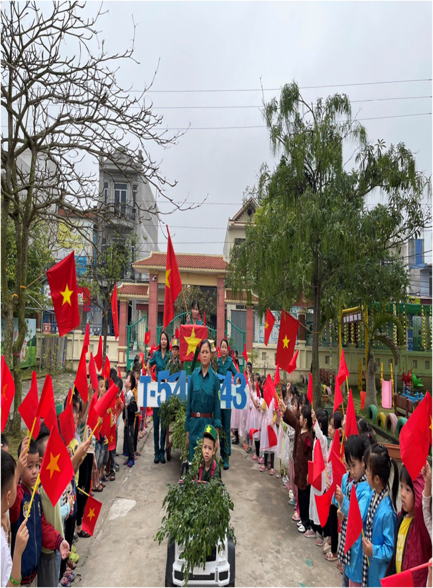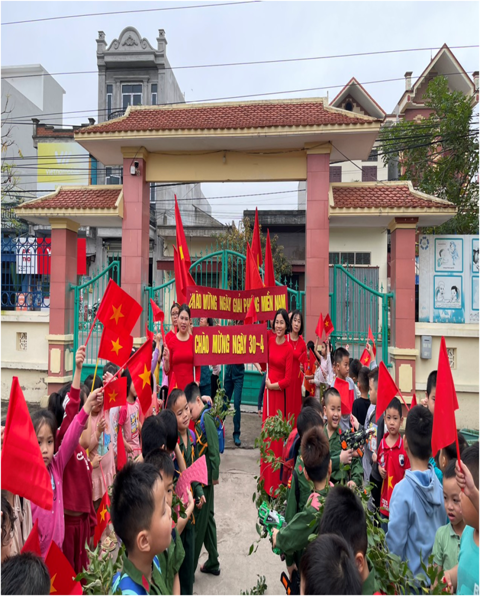 Hòa chung không khí vui tươi phấn khởi chào mừng 49 năm Ngày Giải phóng miền Nam thống nhất đất nước, trong những ngày này cả nước cũng đang hân hoan chào mừng 138 năm Ngày Quốc tế Lao động 01/5. Hôm nay trong không khí tưng bừng, phấn khởi hướng tới kỷ niệm ngày giải phóng miền Nam, thống nhất đất nước. Cô và trò Trường Mầm non xã Nghĩa Thái cùng nhau ôn lại những chiến công vang dội của quân và dân ta trong cuộc kháng chiến bảo vệ Tổ quốc vĩ đại. Đó cũng là dịp để cô trò nhà trường tôn vinh, tưởng nhớ công ơn của các thế hệ đi trước, thể hiện tinh thần “uống nước nhớ nguồn, đền ơn đáp nghĩa”, đó cũng là đạo lý sống hiện nay. Dưới đây là một số hình ảnh chào mừng kỷ niệm 49 năm ngày giải phóng Miền Nam thống nhất đất nước của cô và trò trường Mầm non xã Nghĩa Thái: