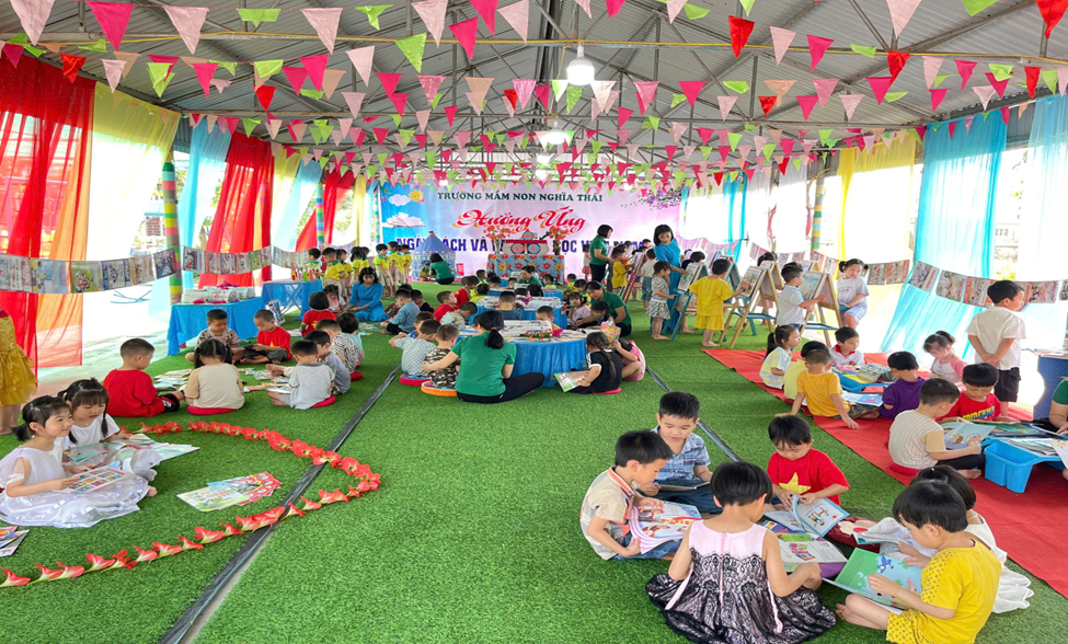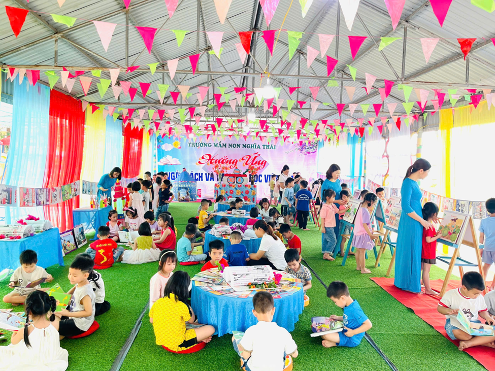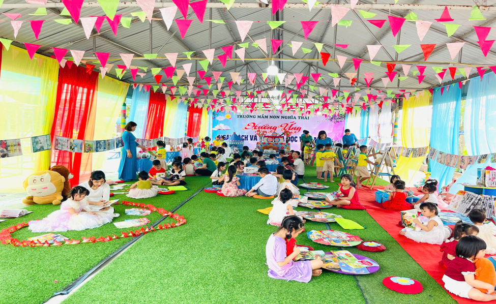 Với mong muốn nuôi dưỡng niềm yêu thích đọc sách cho trẻ ngay từ những năm đầu đời, trường Mầm non xã Nghĩa Thái tổ chức “Ngày hội Văn hóa đọc” dành cho các bé trong toàn trường. Đây là hoạt động ý nghĩa nhằm xây dựng thói quen đọc sách, giúp trẻ làm quen với chữ viết, hình ảnh và ngôn ngữ qua những trang sách sinh động, nhiều màu sắc.
