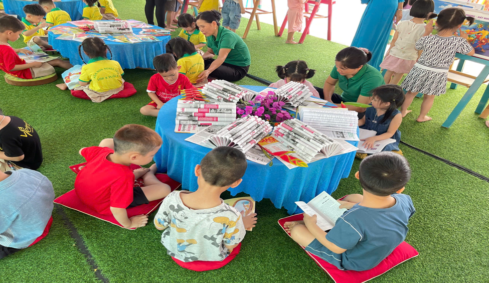 Cô trò Trường Mầm non xã Nghĩa Thái Hưởng ứng Ngày Sách và Văn hoá đọc Việt Nam năm 2025