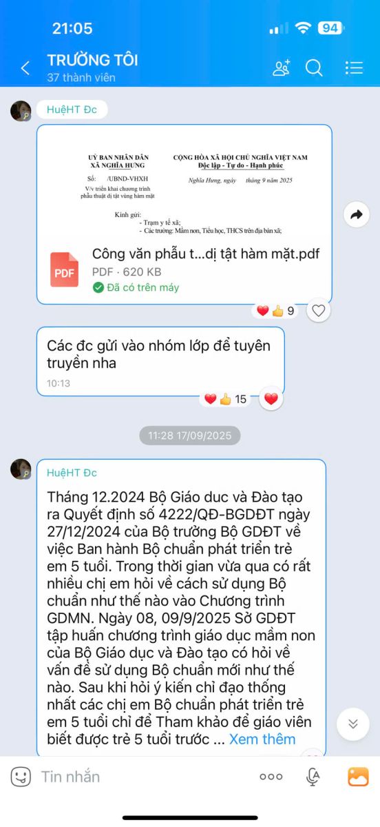 – Nhóm Zalo nội bộ và Google Form được sử dụng để báo ăn, thống kê chuyên cần, trao đổi thông tin nhanh chóng, kịp thời giữa cán bộ, giáo viên và nhân viên.