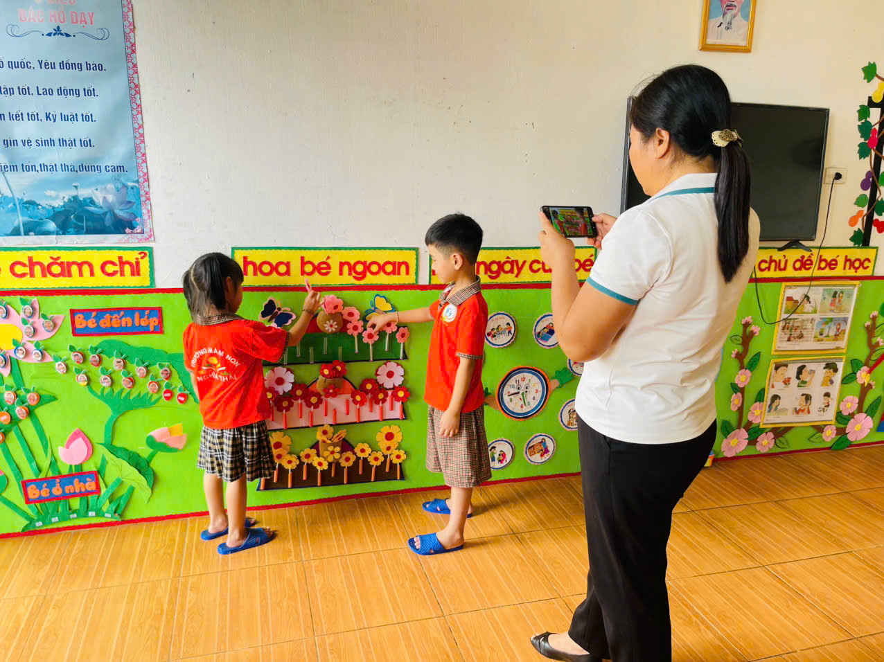 – Giáo viên sử dụng ứng dụng chụp ảnh, quay video, biên tập nội dung số để phản ánh các hoạt động ăn, ngủ, chơi của trẻ, giúp cha mẹ yên tâm và đồng hành cùng nhà trường.