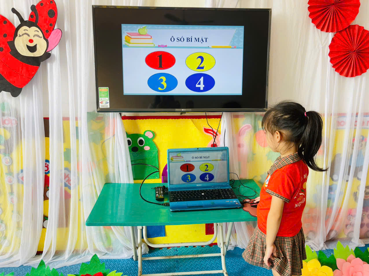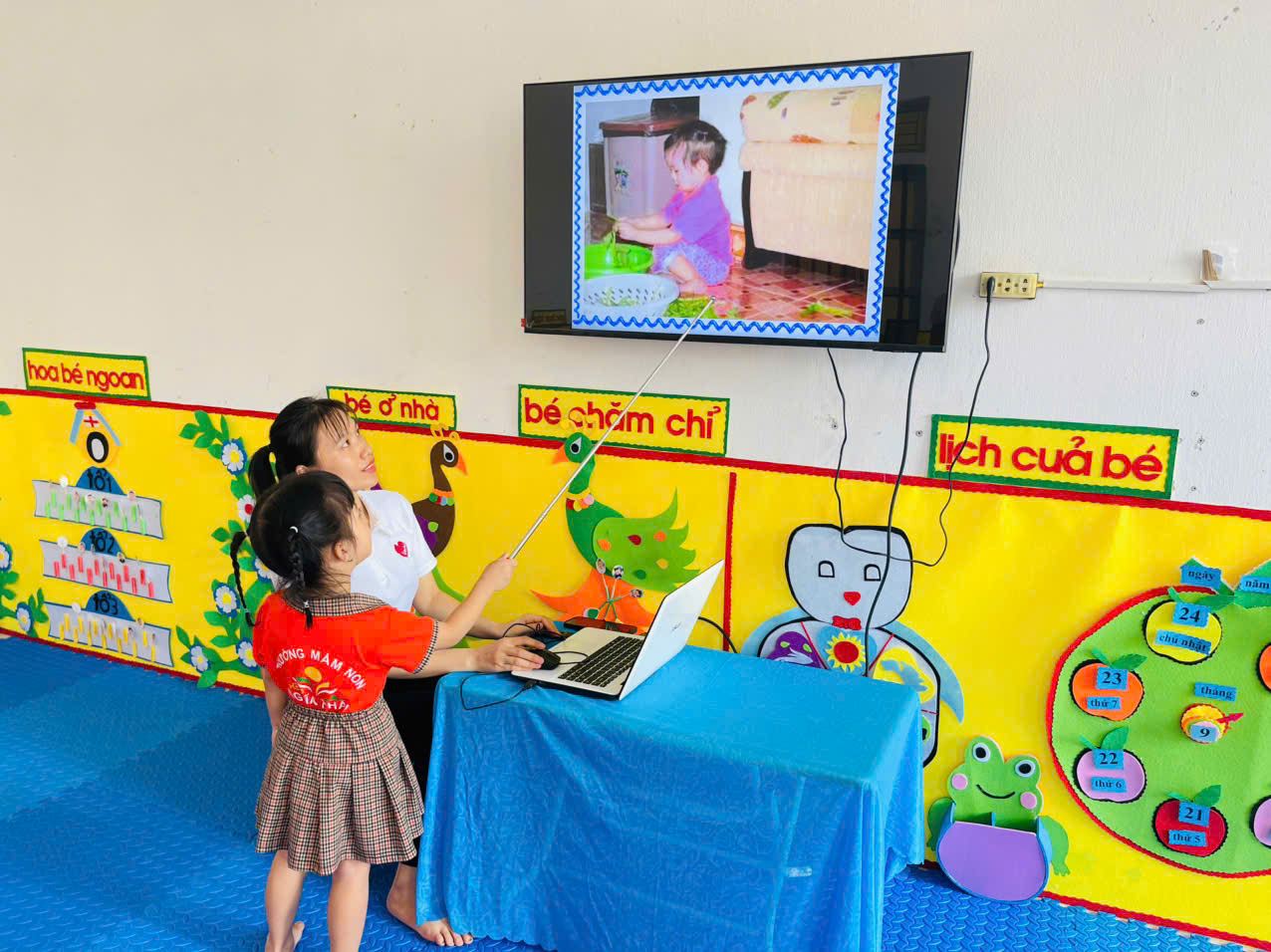 – Một số hoạt động giáo dục như nhận biết màu sắc, hình dạng, chữ số, kể chuyện… được lồng ghép qua ứng dụng học liệu số phù hợp lứa tuổi mầm non.