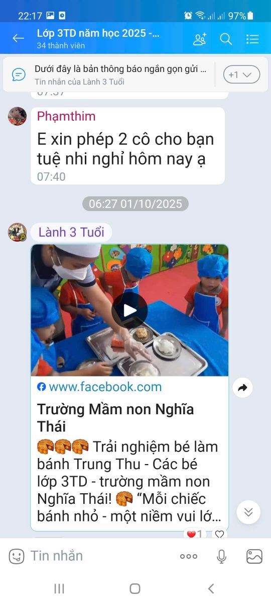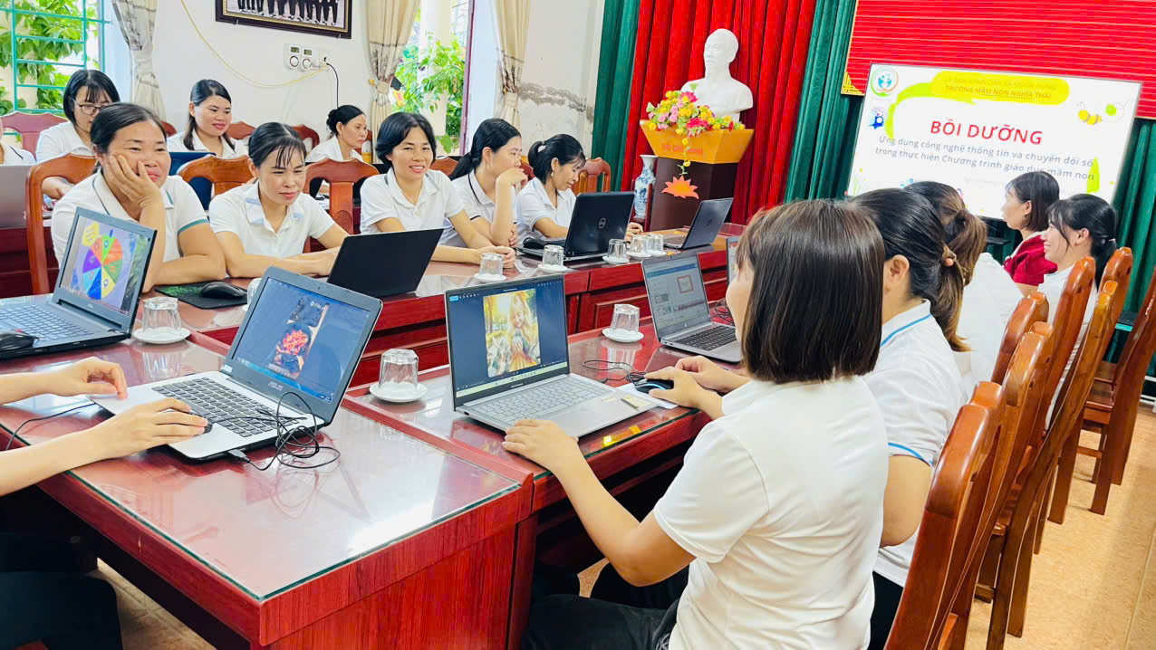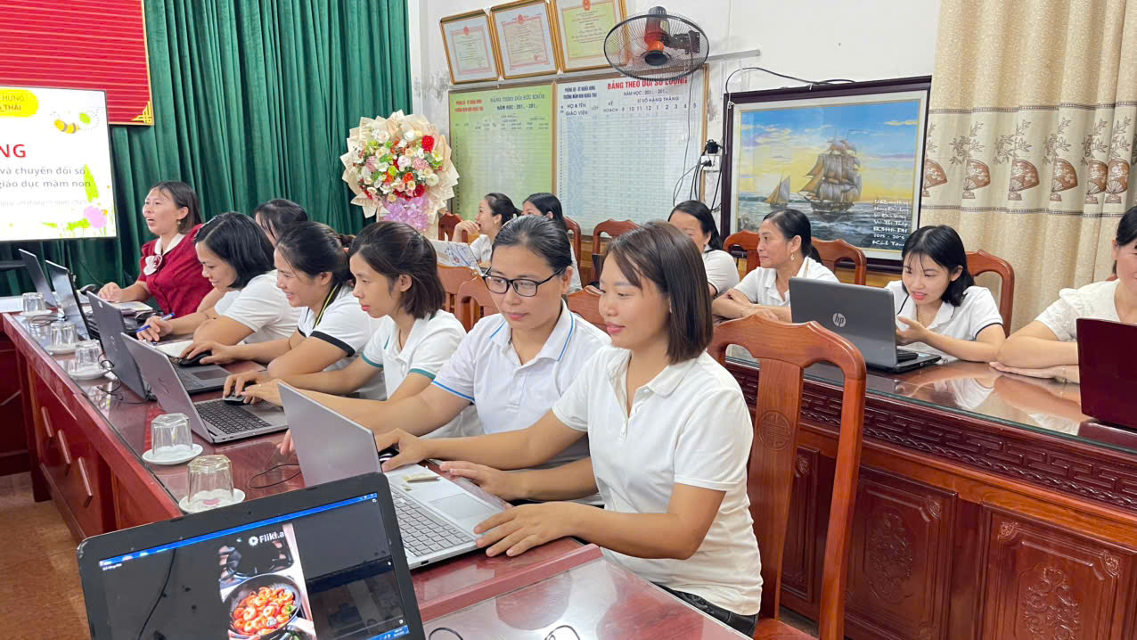 Hưởng ứng Ngày Chuyển đổi số quốc gia 10/10, Trường Mầm non Nghĩa Thái đã tích cực đẩy mạnh ứng dụng công nghệ thông tin và các giải pháp số trong công tác quản lý, chăm sóc, giáo dục trẻ. Đây là bước tiến quan trọng góp phần nâng cao chất lượng nuôi dưỡng, dạy học và tăng cường sự kết nối giữa nhà trường – gia đình – xã hội.
