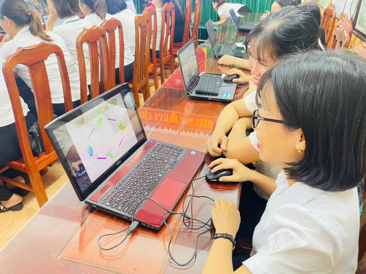 – Nhà trường khai thác hiệu quả kho học liệu điện tử của Bộ GD&ĐT, đồng thời tự xây dựng thư viện bài giảng số dùng chung cho giáo viên.