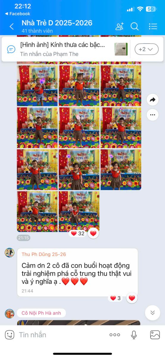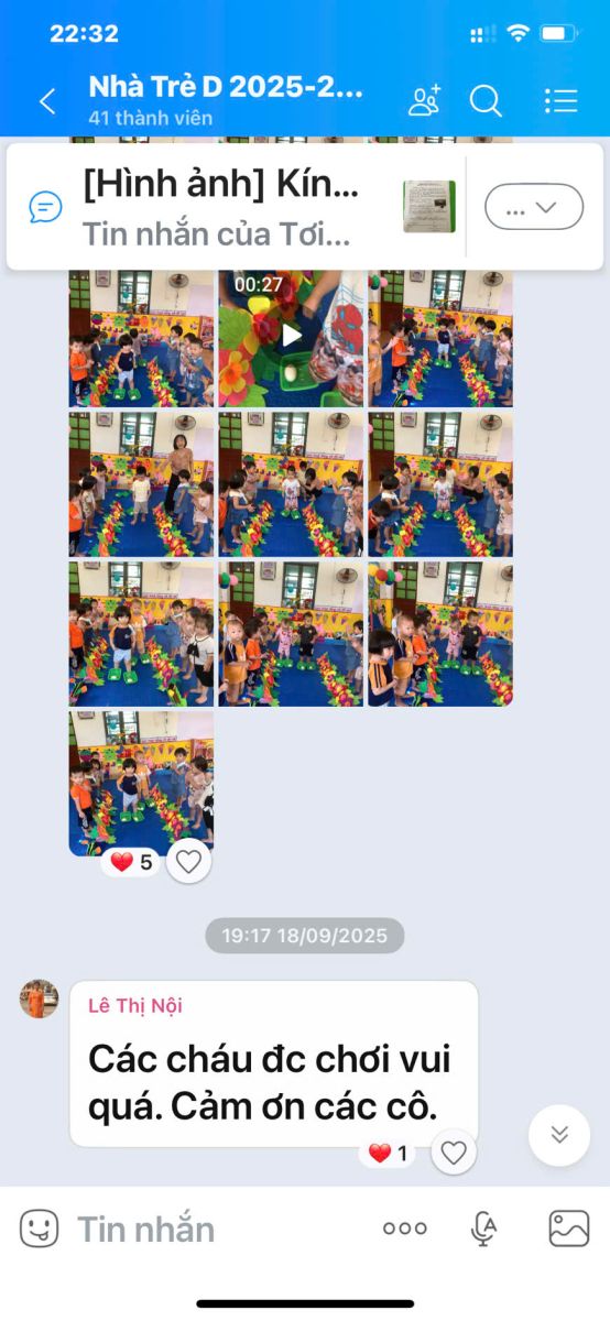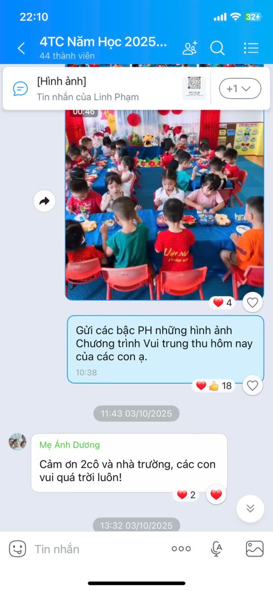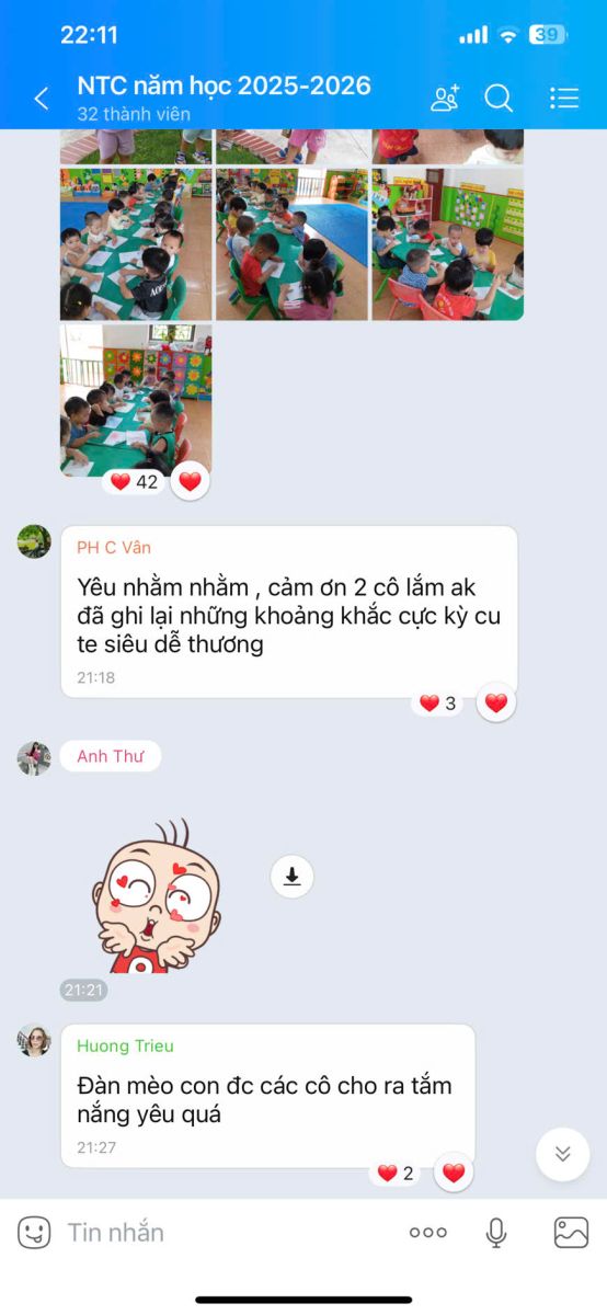 – Thông qua fanpage, website, Facebook, nhóm Zalo cha mẹ, nhà trường thường xuyên chia sẻ thông tin, hình ảnh, video về hoạt động học – chơi của trẻ, tuyên truyền dinh dưỡng, sức khỏe, an toàn.