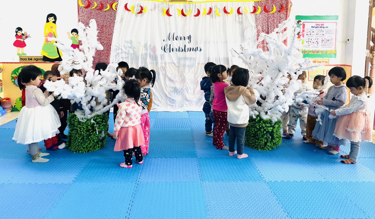 Dù Noel được ăn mừng theo cách nào đi nữa, ý nghĩa chung của ngày lễ này thường là về tình yêu thương, hy vọng, sự đoàn kết và sự chia sẻ. Trường Mầm non Nghĩa Thái là địa bàn có người dân theo đạo Thiên Chúa. Để các con học sinh có thể hiểu được ý nghĩa ngày lễ này, BGH cùng cô con nhà trường đã tổ chức một số hoạt động vui tươi, ấm áp với những hoạt động mang tính vui chơi, sáng tạo và giáo dục. Các bé được cùng cô sử dụng các nguyên vật liệu tự nhiên, phế thải, thân thiện với môi trường như: trang trí cây thông bằng giấy bìa, giấy màu và bông; trang trí cây bông tuyết bằng bông và cành cây khô; làm hang đá từ bìa catton và vỏ bao xi măng; làm ngôi nhà tuyết và ông già Noel bằng xốp dạ và bông tạo không gian ấm áp và kỳ diệu cho các con. Ngoài ra, các con còn được thể hiện tài năng thông qua việc biểu diễn nhảy, hát các bài hát Noel. Dưới đây là một số hình ảnh: