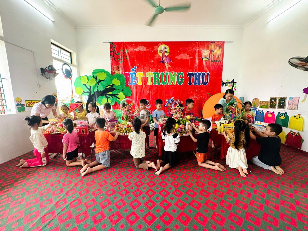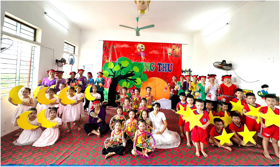 Rộn ràng trải nghiệm “Trung thu đoàn kết và chia sẻ của bé” tại trường Mầm non xã Nghĩa Thái