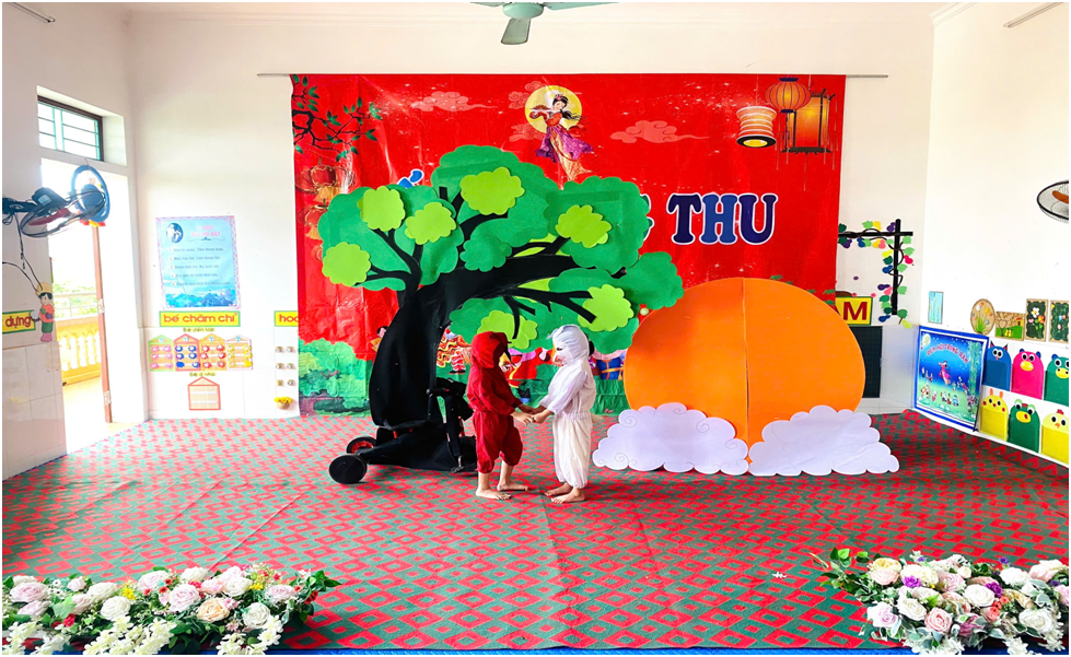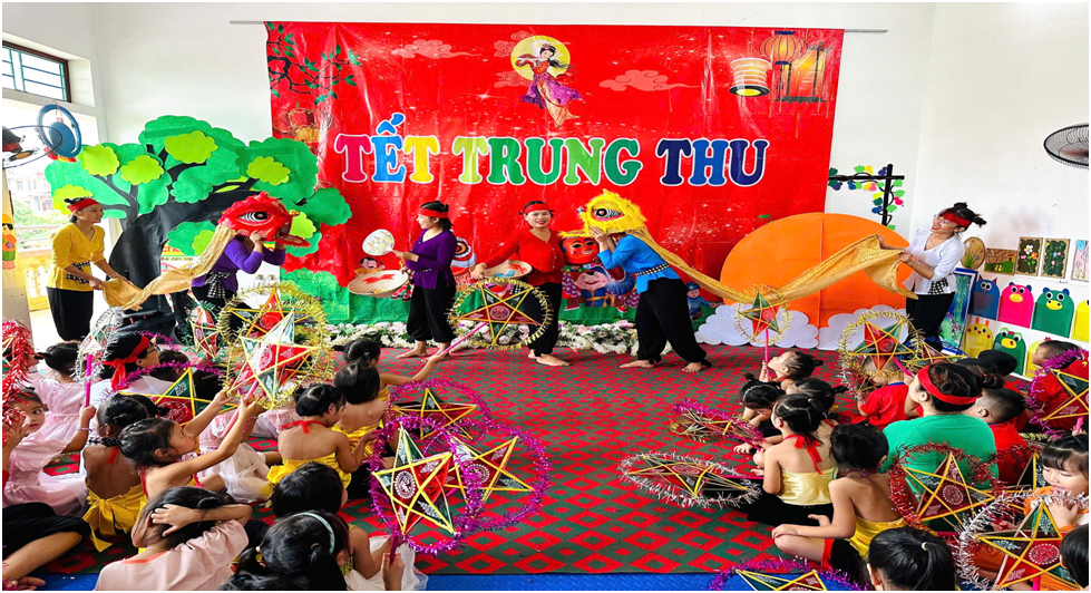 Tết Trung thu là thời điểm được mong đợi và chào đón nhất trong năm của thiếu nhi, ngày mà trẻ em cả nước đều háo hức để được xem múa Lân, rước đèn lồng, đèn ông sao và được phá cỗ trông trăng. Vì ở đó trẻ được vui chơi thỏa thích, vô tư, hồn nhiên, trong trẻo… Vì vậy, Trung thu tạo nên sức hút vô hình, lan tỏa tới mỗi người lớn và cả xã hội. Càng háo hức hơn khi mỗi trẻ vui sướng được cầm trên tay chiếc đèn ông sao, được nhảy múa, hò reo trong tiếng trống, tiếng nhạc của điệu múa Lân, của đêm Trung thu trông trăng phá cỗ, được gặp chị Hằng dịu dàng – xinh đẹp, được gặp chú cuội vui tính, gần gũi, thân thiện…. đó sẽ là những ký ức đẹp trong tuổi thơ mỗi người, là một phần quan trọng hình thành tâm cao đẹp và nhân cách mỗi người, biết yêu thương, chia sẻ và lan tỏa tình thân ái. Đặc biệt là trung thu năm nay khi mà nhiều địa phương vừa trải qua sự mất mát lớn sau cơn bão số 3. Cô giáo đã cho trẻ xem những hình ảnh, video về những vùng quê đó, trò chuyện với các bé về các bạn nhỏ vùng bão lũ. Qua những hình ảnh các con được xem về những thiệt hại của vùng lũ, để các con có sự cảm thông, chia sẻ…Các con có thể ủng hộ các bạn nhỏ vùng lũ bằng cách: Làm đèn lồng, chia lại một phần quà của tết Trung thu gửi đến các bạn nhỏ vùng lũ… Từ đó lan toả tinh thần đoàn kết, tương thân tương ái.