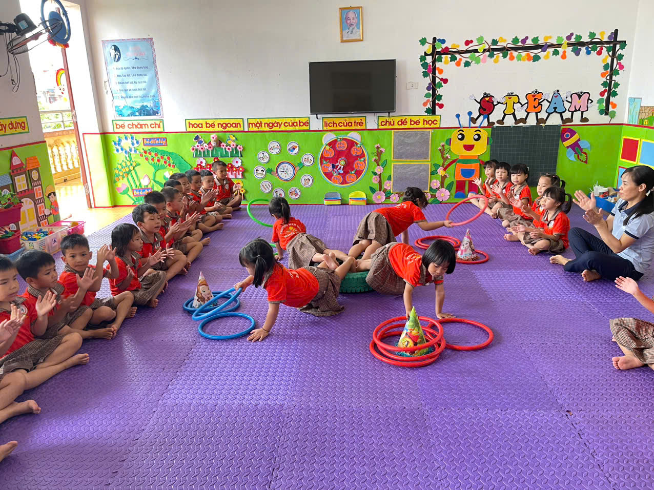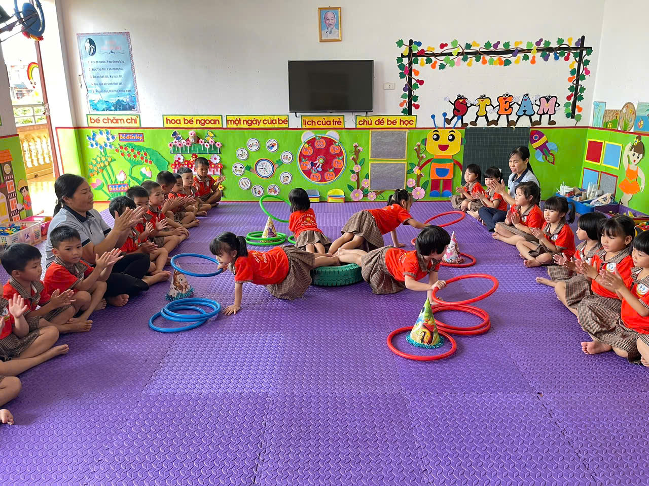 Nhà trường khuyến khích các bậc cha mẹ cùng phối hợp với cô giáo, tạo điều kiện cho trẻ được vận động, tham gia các trò chơi vận động phù hợp tại nhà, góp phần phát triển toàn diện thể chất và tinh thần cho trẻ.