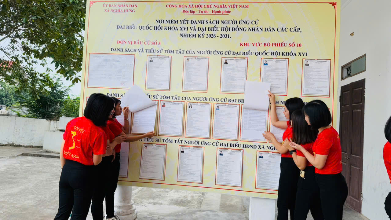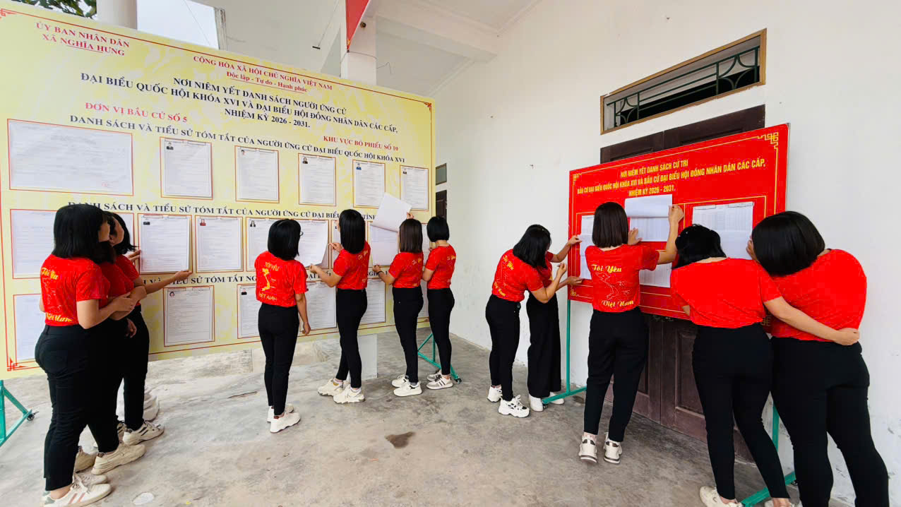 Trong những ngày này, khắp các tuyến đường trên địa bàn Nghĩa Thái rực rỡ sắc đỏ của cờ Tổ quốc, băng rôn, khẩu hiệu tuyên truyền về ngày bầu cử. Tập thể giáo viên nhà trường đã cùng nhau tham gia tìm hiểu thông tin về cuộc bầu cử, xem danh sách và tiểu sử tóm tắt của các ứng cử viên được niêm yết tại khu vực bỏ phiếu; đồng thời ghi lại những hình ảnh đẹp, lan tỏa tinh thần trách nhiệm của mỗi công dân đối với sự kiện chính trị trọng đại của đất nước.