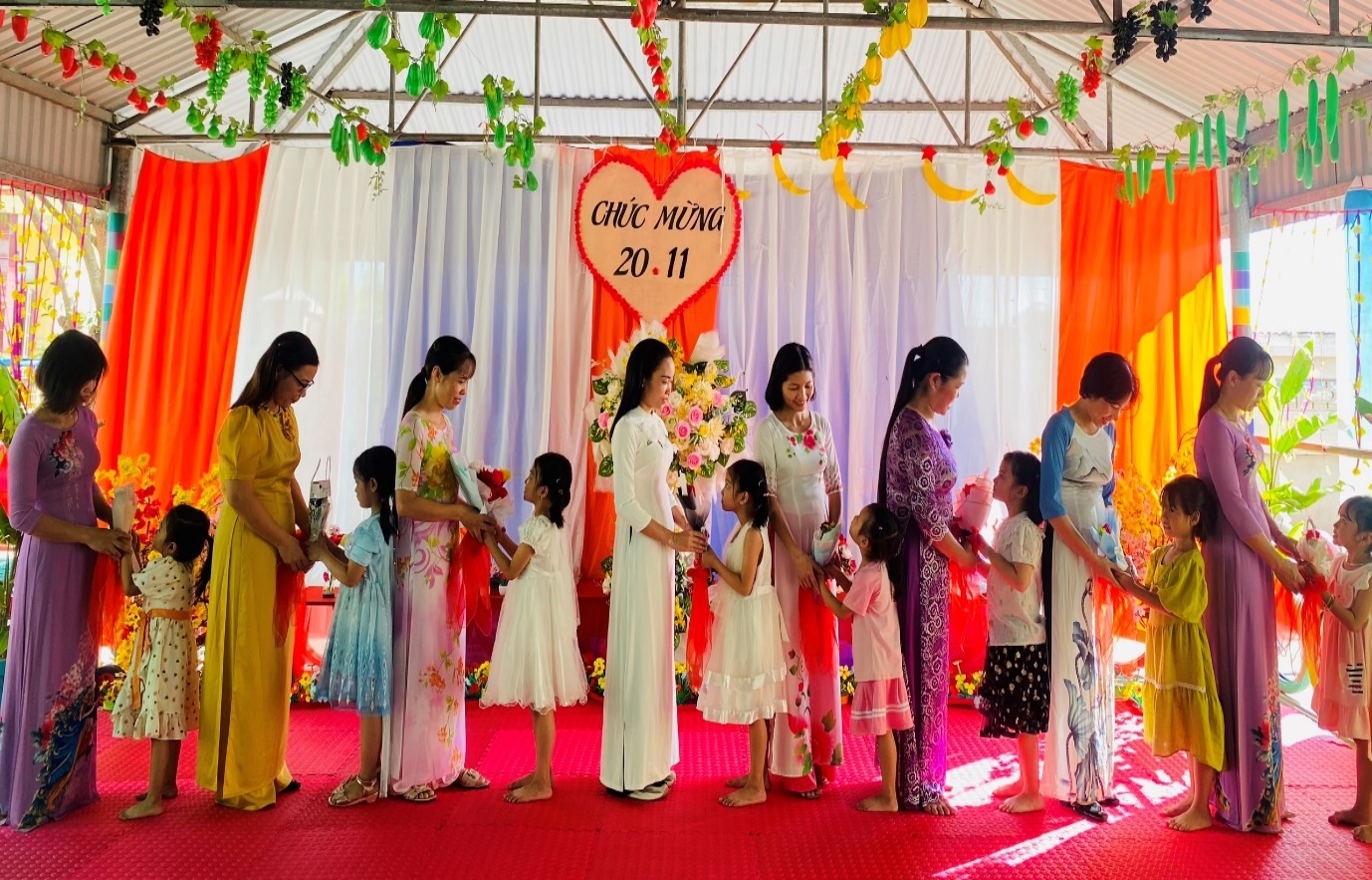 Nếu ở các cấp học khác các thầy cô được đón nhận tình cảm của học trò bằng những lời chúc ngọt ngào ấm áp, những dòng lưu bút, những nhành hoa tươi thắm thì các cô giáo Mầm non lại được đón nhận tình cảm của học trò bằng những lời ca điệu múa, những bài thơ qua những giọng đọc còn chưa tròn vành rõ tiếng, qua những trò chơi vui nhộn, những ánh mắt tràn ngập niềm vui…Đây là món quà tuyệt vời, là nguồn động viên cổ vũ để các cô luôn luôn cố gắng, vững bước trong sự nghiệp trồng người.
